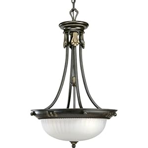 Product Description : Color: Forged BronzeFrom the ManufacturerRich with Victorian-era details, the Huntington Collection features reeded arms and cast elements in a striking antiqued patina finish. Etched glass shades are cast with a stately fluted relief pattern and beaded detail. Inverted bowl foyer fixture with etched, patterned glass shade. Uses (3) 100-Watt medium base bulbs 16-1/4-Inch Diameter by 24-Inch Height Product Description : Progress Lighting P3708-77 Inverted bowl foyer fixture with etched, patterned glass shade. Forged Bronze Huntington Collection Forged Bronze 3-light Chandelier Rich with Victorian-era details, the Huntington Collection features reeded arms and cast elements in a striking antiqued patina finish. Etched glass shades are cast with a stately fluted relief pattern and beaded detail. Forged Bronze finish Etched ribbed glass 16-1/4 In. Diameter x 24 In. Height Uses (3) 100-watt medium base bulbs