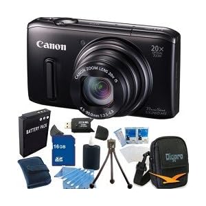 Canon PowerShot SX260 HS 12.1 MP CMOS Digital Camera with 20x Image Stabilized Zoom 28mm Wide-Angle Lens and 1080p Full-HD Video (Black) Super Bundle With 16GB Secure Digital High-Capacity Memory Card, DigPro Deluxe Case, Reader, NB-6L Battery And More