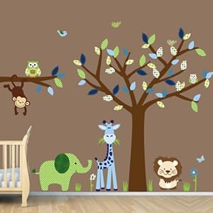 Childrens Jungle Wall Decals, Nursery Room Decoration, Green Elephant, Tree Wall Decals (Green Envy)