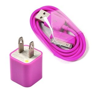 Cosmos Hot Pink Wall Ac Charger USB Sync Data Cable for Iphone 4 4s 3g/ s Ipod + Free Cosmos Cable Tie