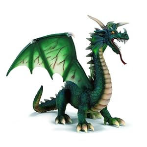 Green Dragon Horns on its head Claws on its feet and wings Long red tongue Highly detailed design