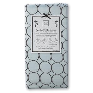 SwaddleDesigns Lightweight Marquisette Swaddling Blanket - Pastel Blue with Brown Mod Circles