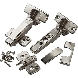 Vendor: 120 degree opening full overlay hinge. 35mm cup bore. Tool free door removal and reattachment. Sold in pairs, includes screws.